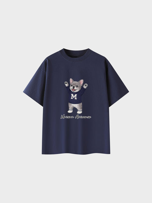 Unisex Cotton T-Shirt - Blue French Bulldog